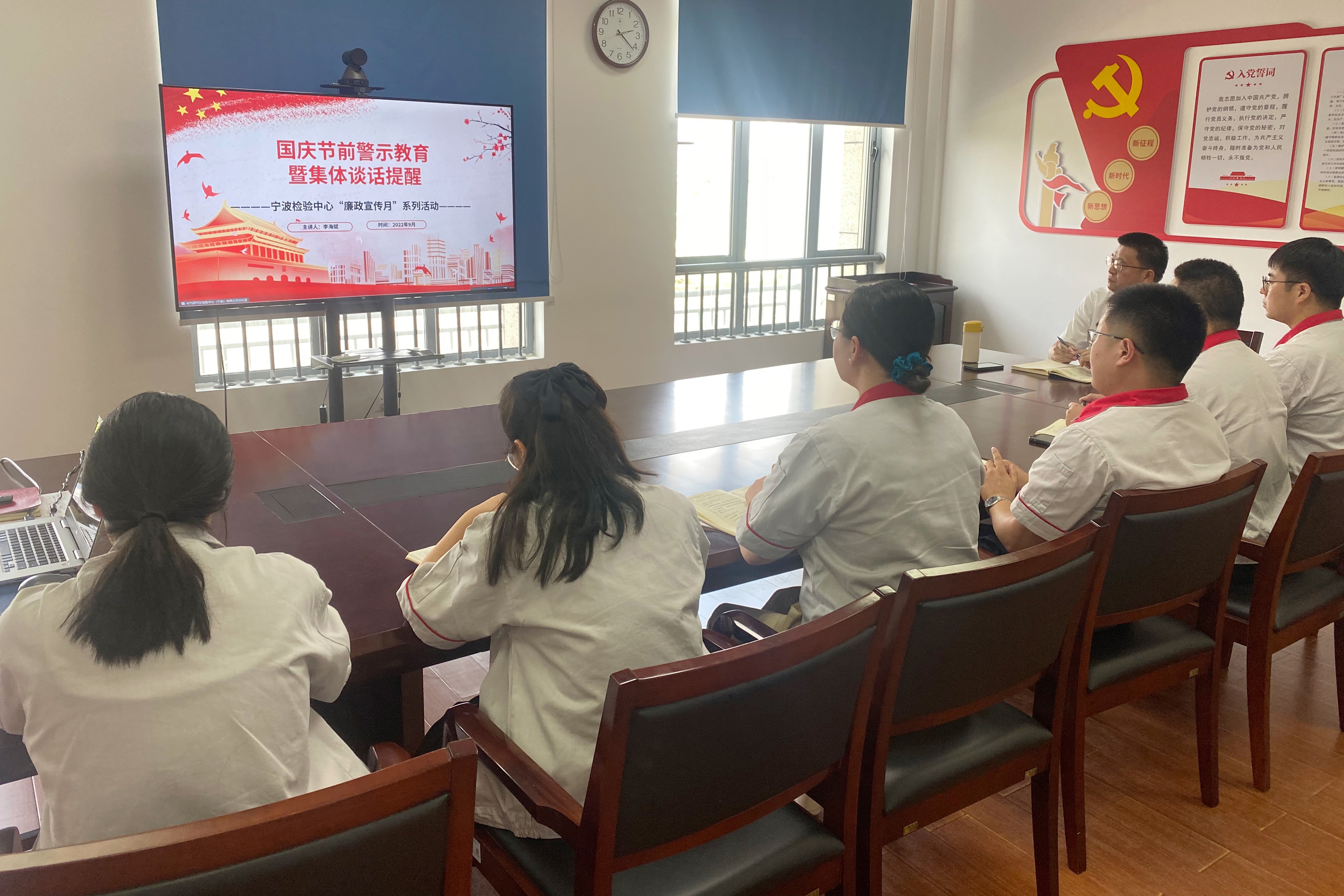 為持續(xù)推進廉政宣傳教育常態(tài)化,引導廣大黨員干部職工堅定理想信念,切實提高對廉潔過節(jié)重要性的認識,提高拒腐防變能力。9月23日下午,寧波檢驗中心召開國慶節(jié)前警示教育暨集體廉政談話活動。寧波檢驗中心黨員、領導干部、關(guān)鍵崗位人員以現(xiàn)場以及視頻方式參加活動。