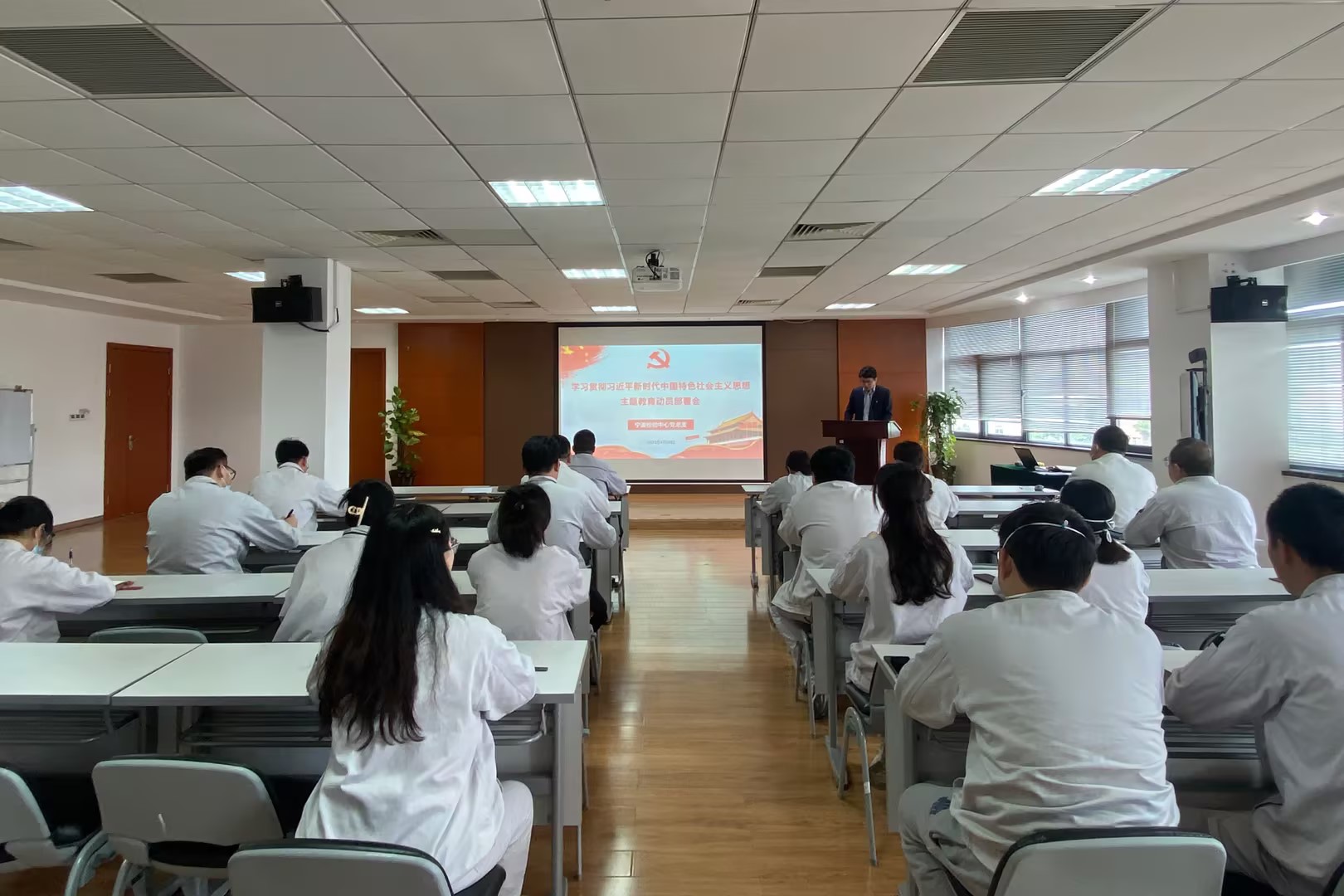 2023年4月28日,寧波檢驗中心黨總支召開學習貫徹習近平新時代中國特色社會主義思想主題教育動員部署會,會議由寧波檢驗中心黨總支書記、總經理李海斌主持,寧波檢驗中心全體黨員線上線下同步參會。